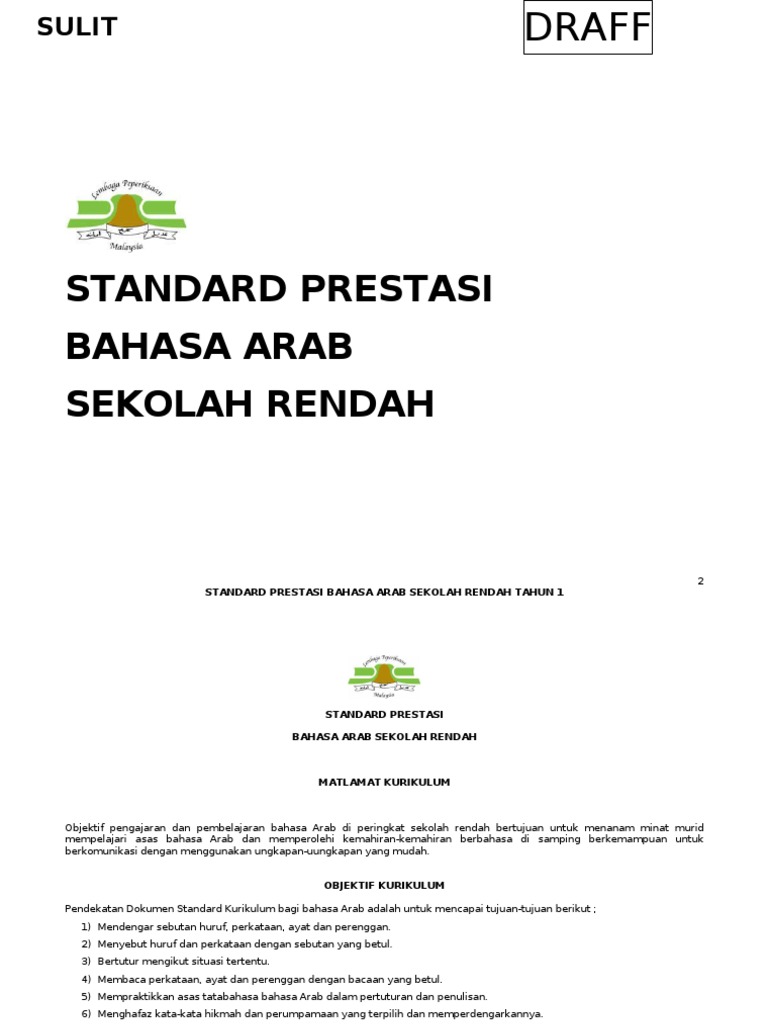 Standard Prestasi Bahasa Arab Tahun 1 Pdf